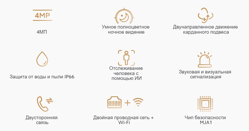 Конструкция с двойным двигателем и функцией панорамирования и наклона позволяет пользователям вращать объектив во всех направлениях с помощью смартфона, обеспечивая больший угол обзора, а также более гибкую и надежную защиту.