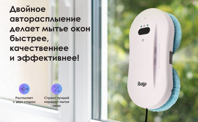 Робот мойщик окон с распылением с двух сторон от специализированного на робототехнике бренда iBoto – это идеальный робот мойщик, чтобы экономить вам время и деньги на мытье окон, безопасно мыть любую вертикальную и горизонтальную поверхность в квартире или доме: окна, зеркала и многое другое, не оставляя разводов, не царапая и не повреждая поверхность! Робот мойщик будет прекрасным помощником в решении проблемы безопасного мытья окон от 30 см на высоких этажах!