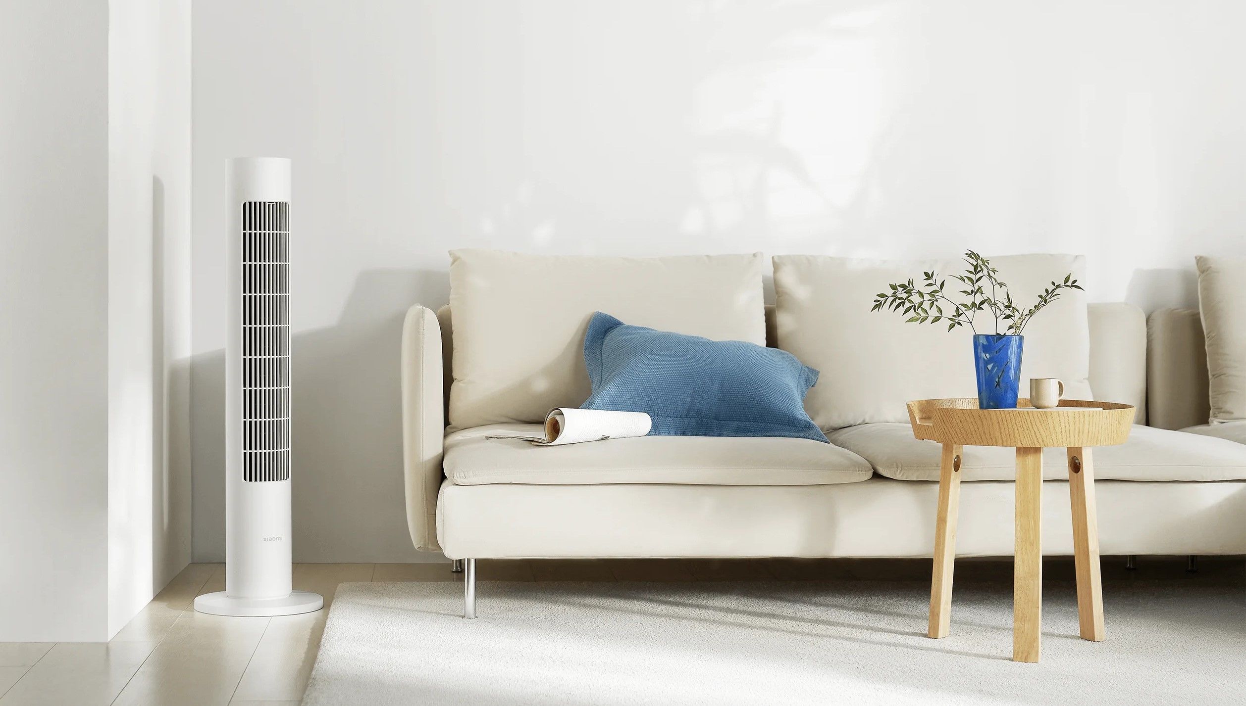 Конструкция воздухоотвода длиной 60 см обеспечивает обширный поток воздуха, а широкоугольная вентиляция на 150° ускоряет циркуляцию воздуха в помещении, что дает более быстрое охлаждение. Также, можно настроить различные углы обдува с помощью приложения Xiaomi Home.